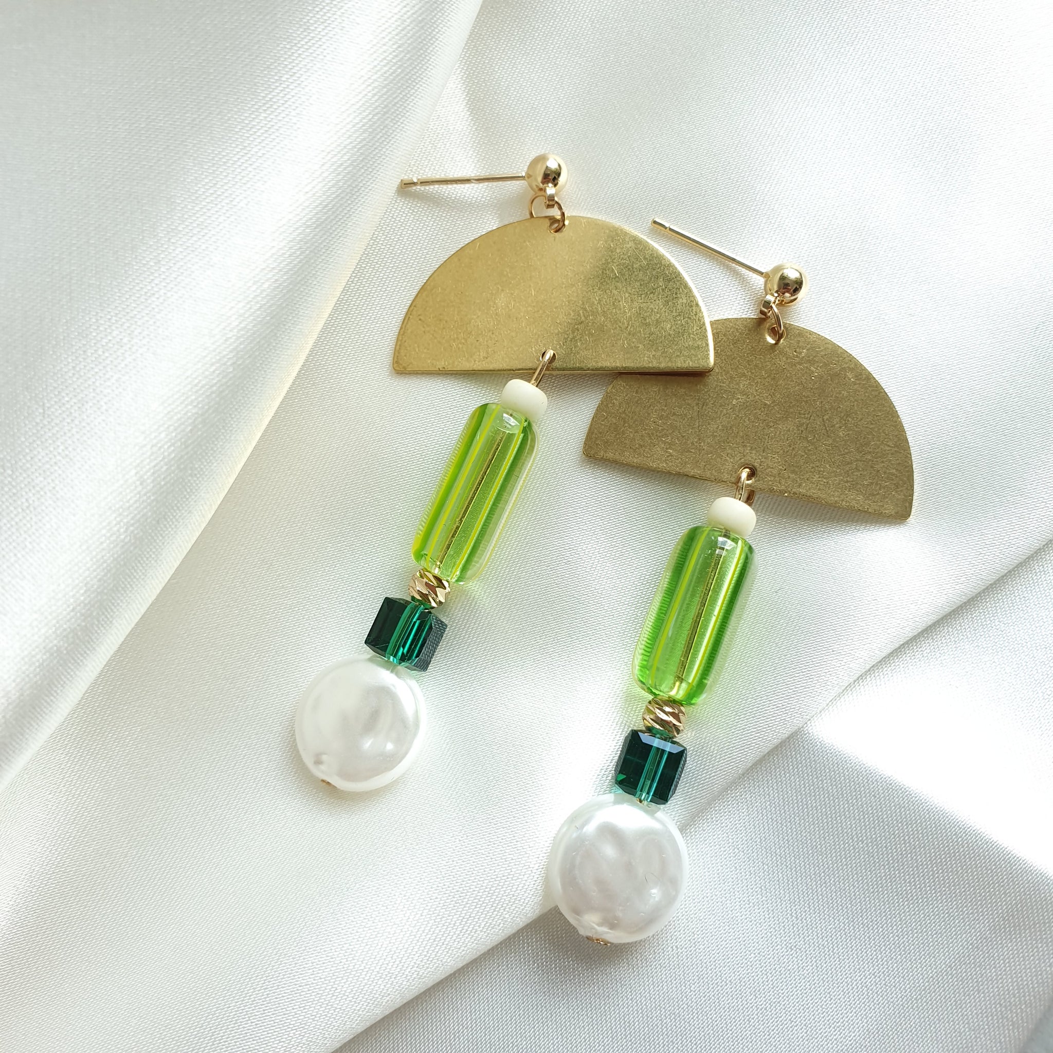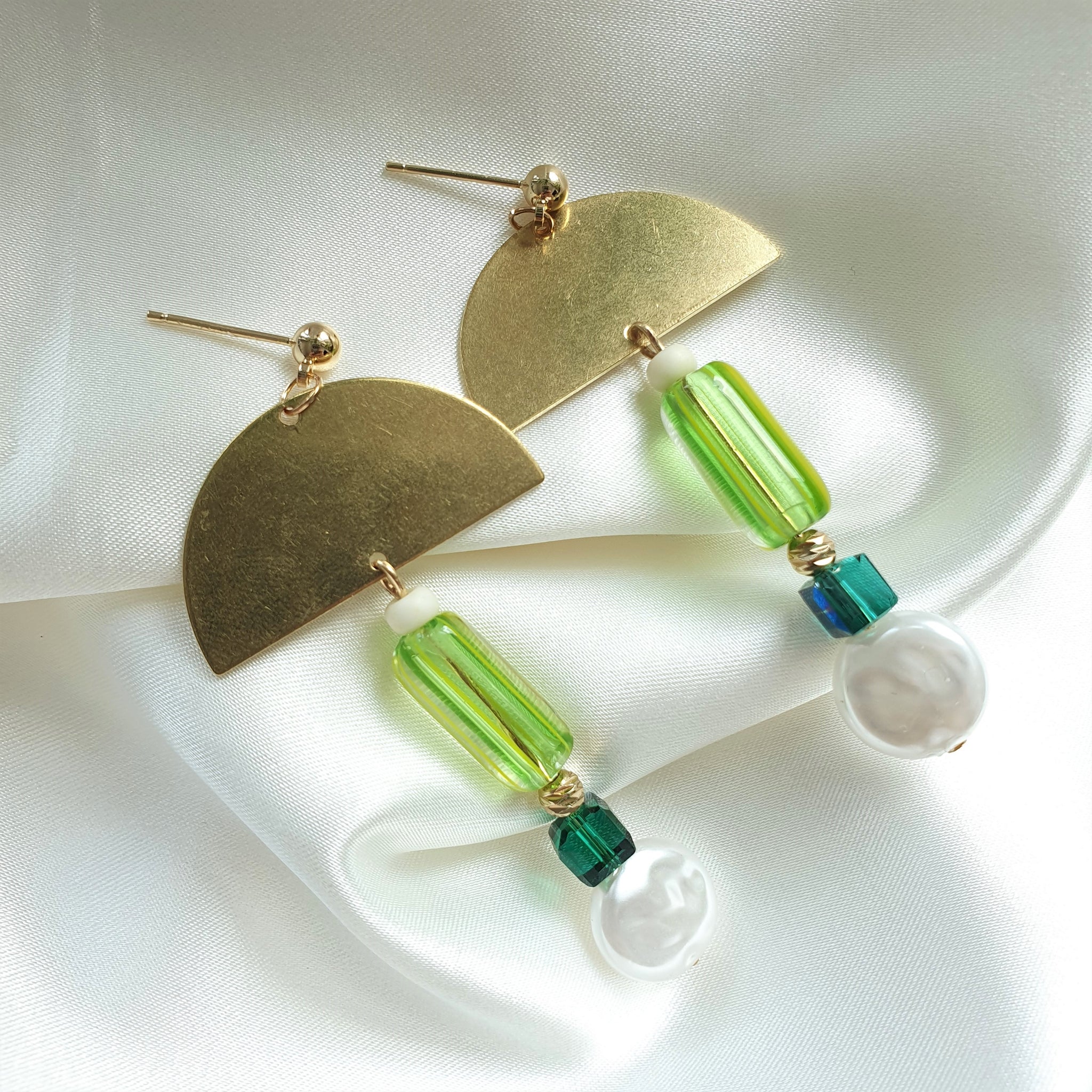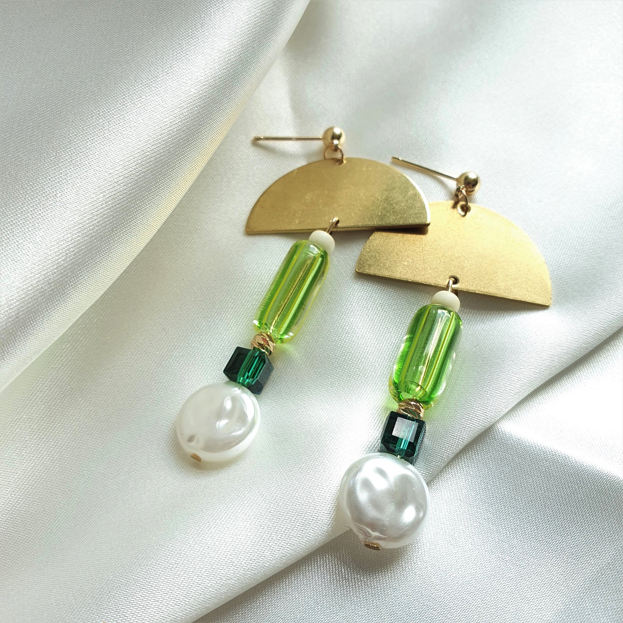 Any green lovers out there like me? :) Made using raw brass, glass beads, pearl beads and lightweight acrylic beads.